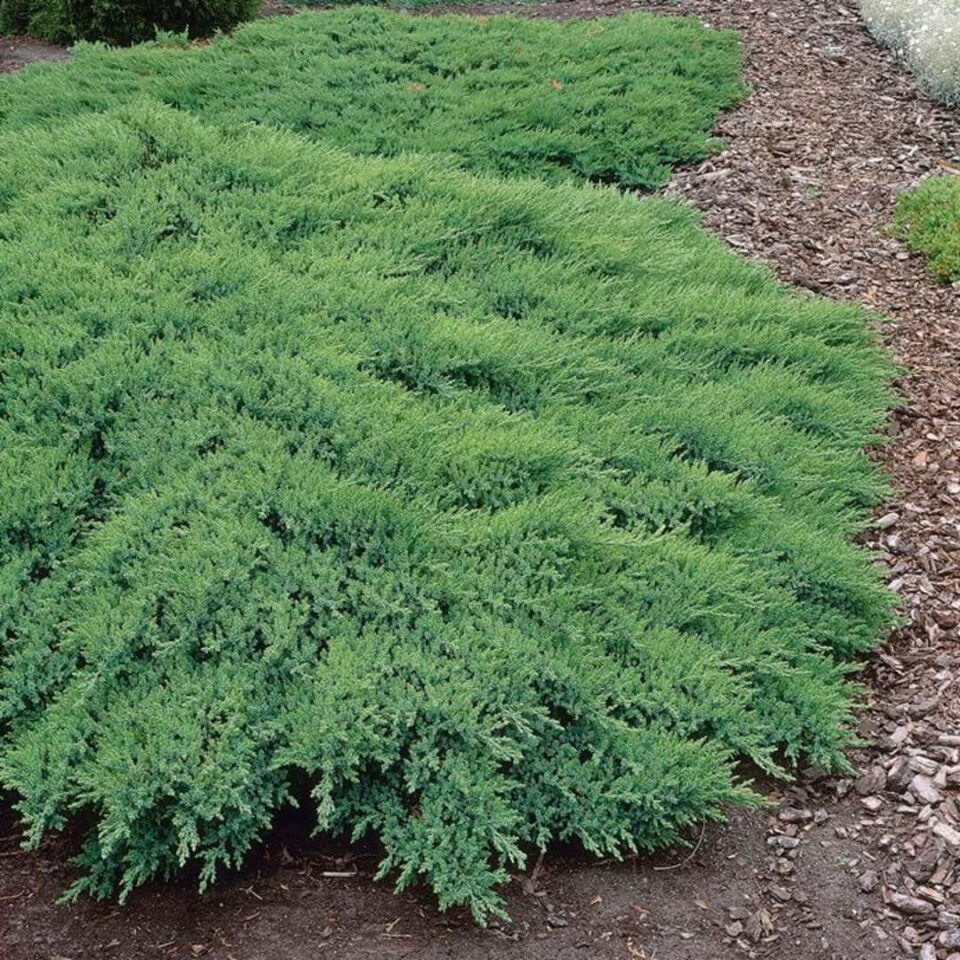Саженец можжевельника казацкого сорта "Рокери Джем" отличается своей карликовой структурой, являясь одним из наиболее крупных представителей в своем классе. Этот кустарник успешно адаптируется и расширяется благодаря своей способности легко укореняться в почве. С максимальной высотой около 50 см, он способен охватывать площадь до 2 квадратных метров. Ветви этого сорта можжевельника примечательны своей спиральной формой, а темно-зеленые побеги придают ему элегантный и праздничный вид.