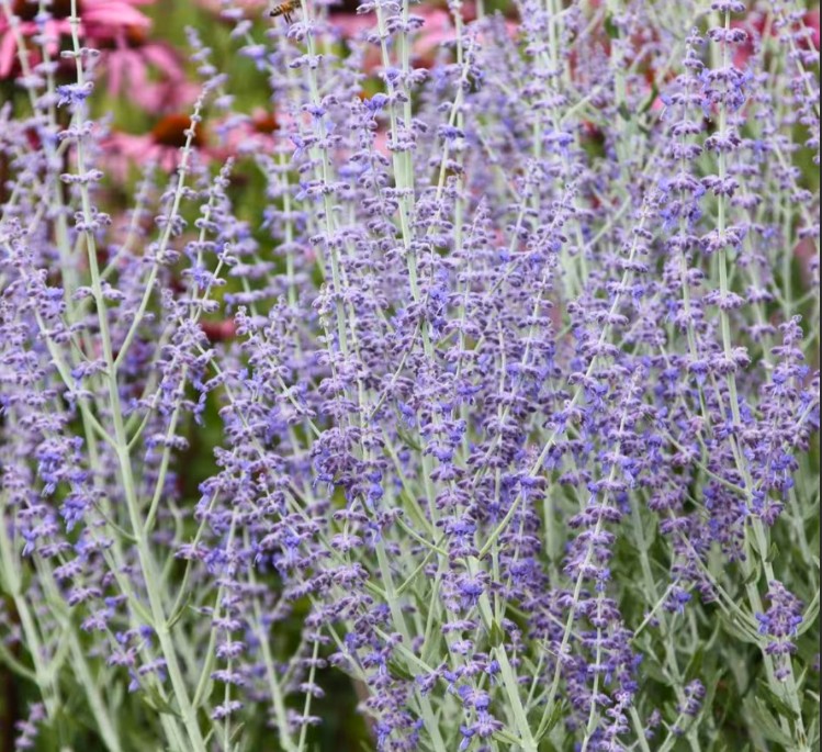 Перовския лебедолистная "Тоскующая" (Perovskia atriplicifolia) принадлежит к семейству Яснотковых и более известна как русский шалфей. Это высокий, раскидистый кустарник, который с июля по октябрь радует глаз сине-фиолетовыми цветами, собранными в метёлки. Внешне перовския напоминает лаванду, но значительно превосходит её по размеру. Длительное цветение, зимостойкость и внушительная высота делают русский шалфей популярным среди садоводов и ландшафтных дизайнеров.