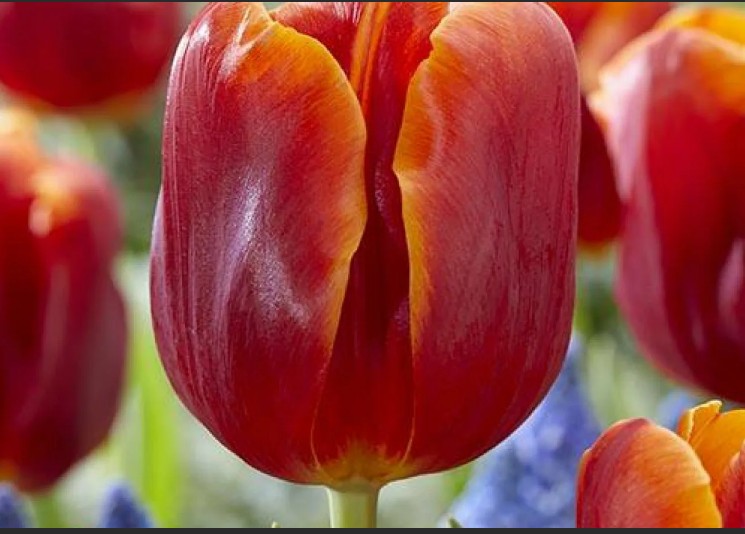 Луковица тюльпана сорта Ангела Меркель (Angela Merkel) представляет собой один из наиболее востребованных видов тюльпанов триумф. Этот сорт отличается бокаловидными цветами насыщенного красно-оранжевого оттенка. В период цветения тюльпан Angela Merkel излучает приятный и заметный аромат. Диаметр цветка составляет около 6 см, а высота растения достигает 50 см.